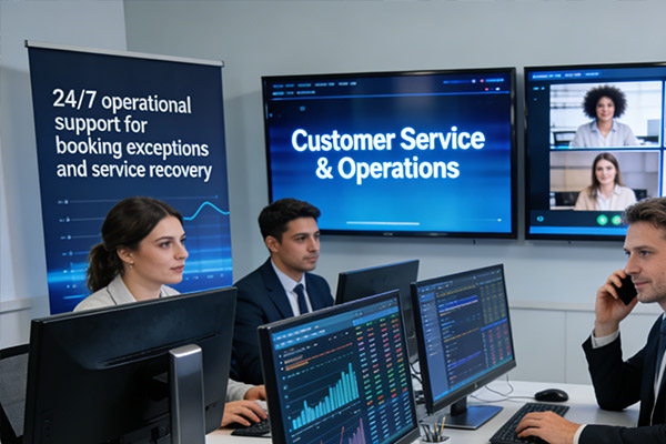 - 24/7 operational support for booking exceptions and service recovery
